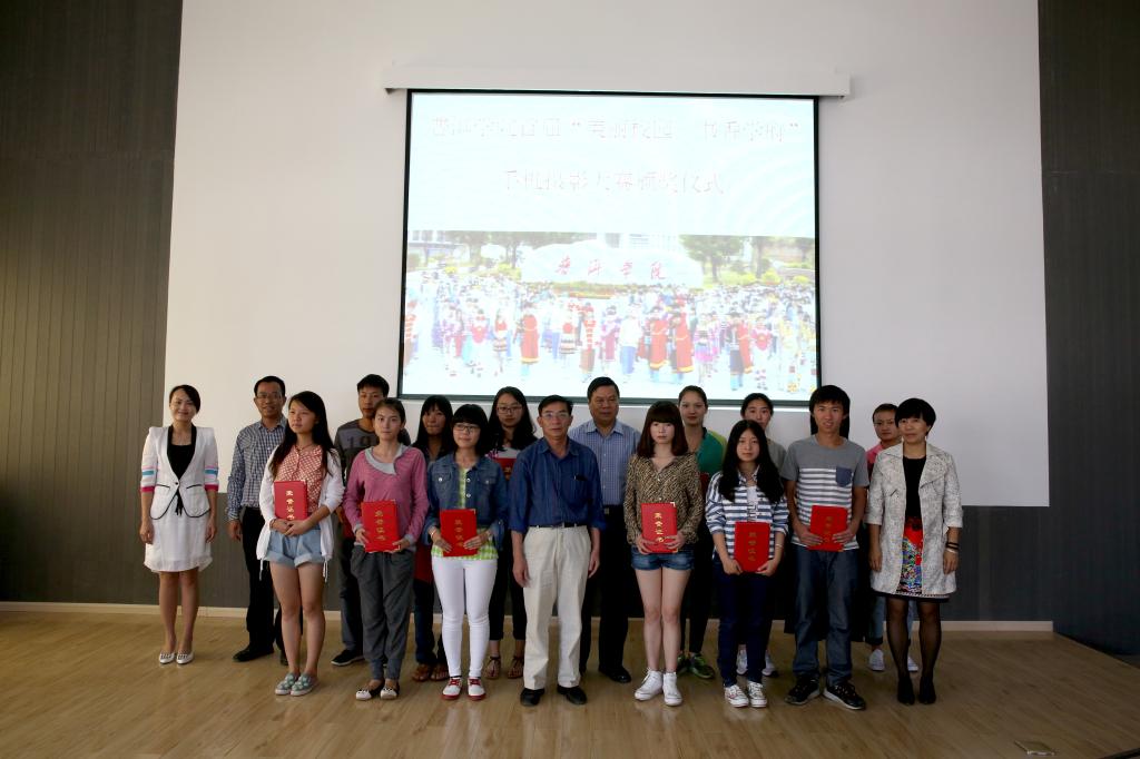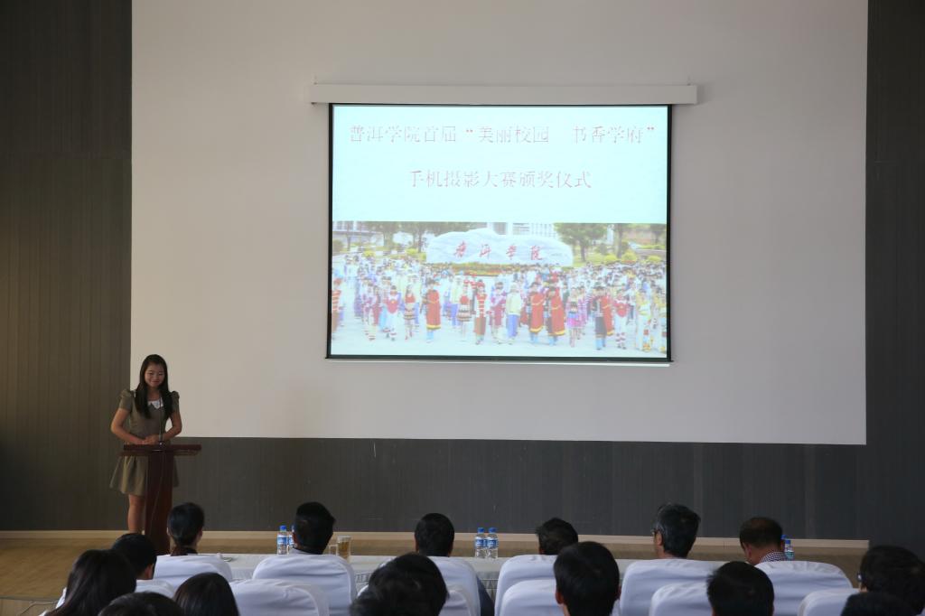 4月3日下午,beat365官方网站首届“美丽校园·书香学府”手机摄影大赛颁奖仪式在明德行政楼二楼会议厅举行,我校党委书记伍中华出席仪式并为一等奖获得者颁发奖品和证书,我校党委副书记、纪委书记魏宏出席仪式并为三等奖获得者颁发奖品和证书,中国电信股份有限公司普洱分公司总经理朱敏出席仪式并为二等奖获得者颁发奖品和证书。我校团委副书记段世敏、中国电信股份有限公司普洱分公司总经理助理周艳华、我校各系团总支书、中国电信股份有限公司普洱分公司部分中层干部、学生干部代表参加了仪式。