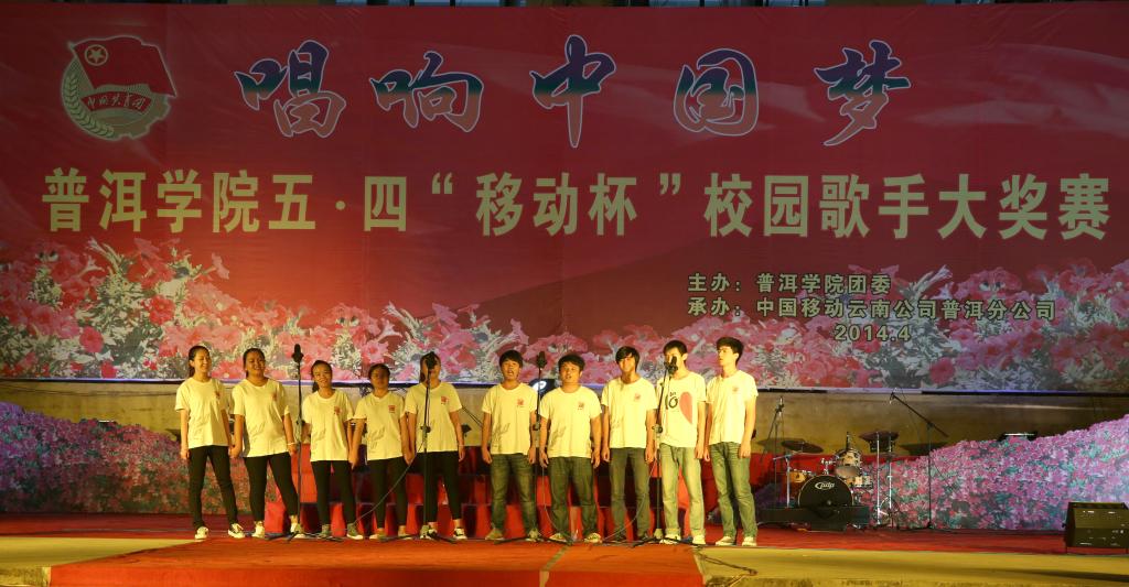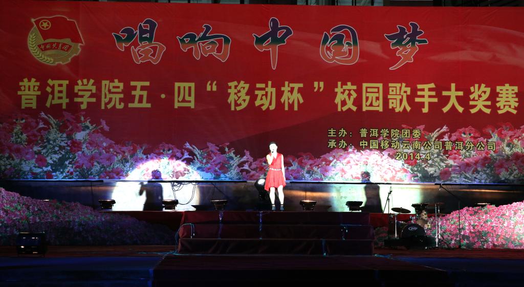 4月28日晚,由我校团委主办、中国移动通讯集团云南有限公司普洱分公司承办的“唱响中国梦”beat365官方网站五·四“移动杯”校园歌手大奖赛决赛在学校东区广场隆重举行。学校党委书记伍中华,党委副书记、纪委书记魏宏,院长助理,中层干部以及各院系教师、学生代表共千余人观看比赛。此外,本次决赛还邀请到了共青团普洱市委副书记陈勇志、普洱各市直机关单位的团委负责人、中国移动普洱分公司的数位嘉宾。我校七位声乐老师担任评委,比赛现场由学生周荣、陈杨主持。