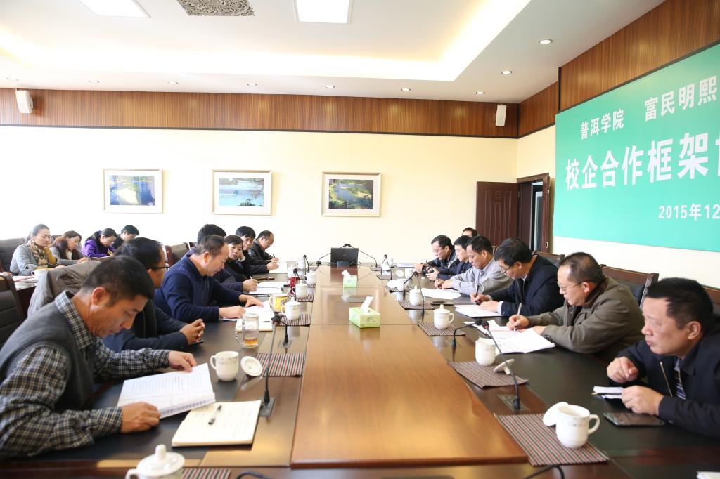 12月23日上午,普洱市副市长童书玮率普洱市政府办、教育局、发改委、人社局、外侨办、财政局、卫计委、科技局、文化局等相关部门领导到我校调研,并在行政楼一楼举行座谈会。校长成文章,党委副书记、纪委书记魏宏,党委副书记郑颖松、副校长代红兵及学校相关部门负责人参加座谈会。