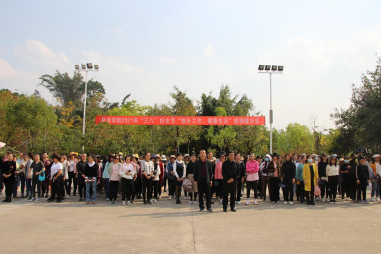 为庆祝第111 个“三八”国际妇女节,团结动员广大妇女积极投身全面建设社会主义现代化国家新征程,以教育教学的高质量发展迎接建党100周年,学校紧扣“巾帼心向党 奋斗新征程”主题,组织开展了“三八”系列庆祝活动。一是广泛开展法治宣传,大力引导妇女尊法学法守法用法。开展普法线上讲座,面向全校师生广泛宣传《民法典》、《反家庭暴力法》和《云南省反家庭暴力条例》等法律法规;响应全国总工会号召,积极组织女职工参加线上法律知识竞赛和“三八”普惠活动;突出典型示范,开展全国五一巾帼标兵岗、全国五一巾帼标兵及云南省职工和谐家庭线上事迹宣讲会。二是围绕关爱女教职工身心健康,组织开展校园健步走、野外踏青、健康知识讲座等,大力倡导“快乐工作、健康生活”理念。三是以“推动女性阅读,建设书香家庭”为宗旨,广泛发动女职工参与以“百年圆梦•幸福启航”为主题的第九届“书香三八”读书活动。