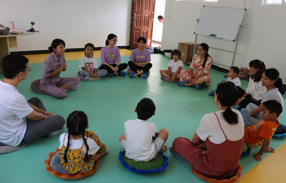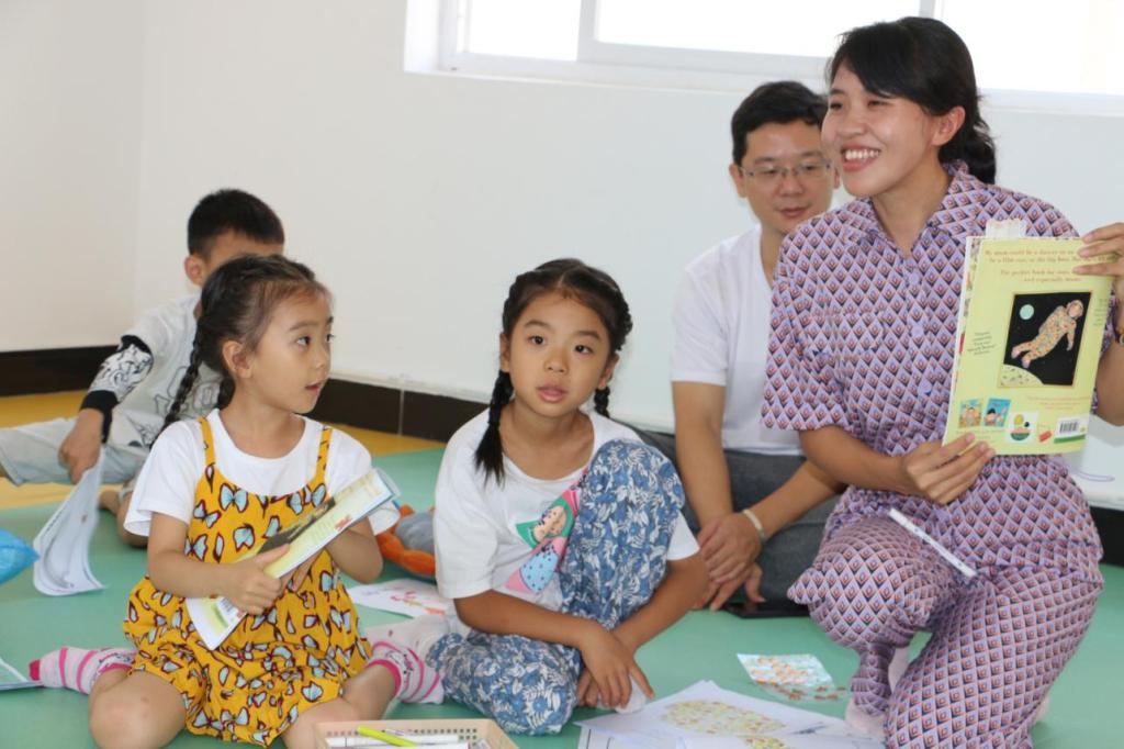 启动仪式后,外国语学院胡蓉老师带领两名学生志愿者为孩子们上了一堂活泼生动的英语课。此次英语课堂以家庭英语主题类绘本阅读为主,“沉浸式”英语的教学,让孩子们从绘本阅读中感受到了英语的魅力,营造了一个氛围极好的亲子共学环境。