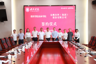 10月8日下午,农林学院与广州市东鹏饮料(集团)股份有限公司技术研发合作项目签约仪式在beat365官方网站图书馆一楼会议室举行。学校党委委员、副校长白应华,广州市东鹏饮料(集团)股份有限公司研发部高级经理朱华伟一行,农林学院院领导和部分研发团队成员出席。签约仪式由农林学院党总支书记陈黎黎主持。