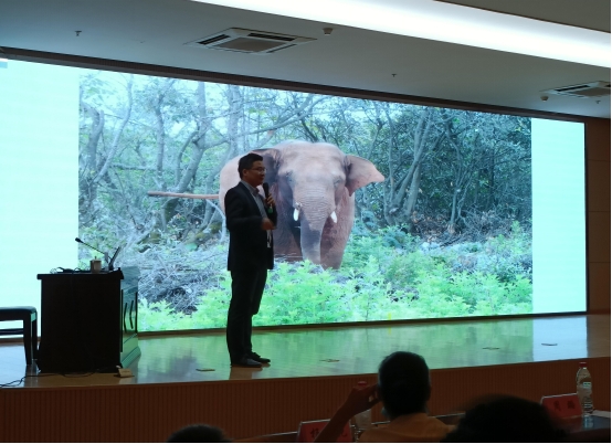 讲座邀请国家林业和草原局亚洲象研究中心主任陈飞作了题为《保护亚洲象促进生物多样性保护与发展》的专题报告。讲座中,陈飞以COP15大会盛况介绍引入,以北移亚洲象群为例,向大家介绍了亚洲象与非洲象的区别、云南亚洲象的分布、北移亚洲象的活动情况,以及一直以来国家林业和草原局亚洲象研究中心开展的亚洲象保护管理亟需基础应用研究。同时,通过国家公园生态文明建设及COP15大会内容介绍,重点讲述了如何促进生物多样性保护与发展。