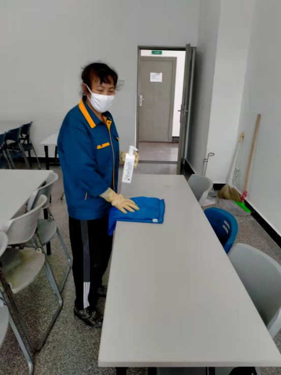工作人员对校门、教室、食堂、宿舍、厕所等重点区域进行全面清洁消毒,做好楼梯扶手、门把手、桌椅、电梯等设施消毒工作。并检修公共洗手设施,在公共区域放置洗消用品,张贴标准洗手流程示意图。