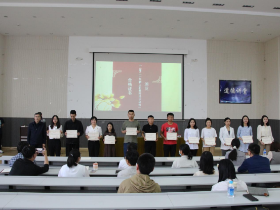 马文会为2021年新入职教师代表颁发结业证书,并为“青年教师混合式教学竞赛”获奖教师颁奖。