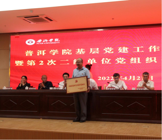 胡国云为荣获“云南省2021年度高校先进基层党组织”的马克思主义学院党支部颁奖。