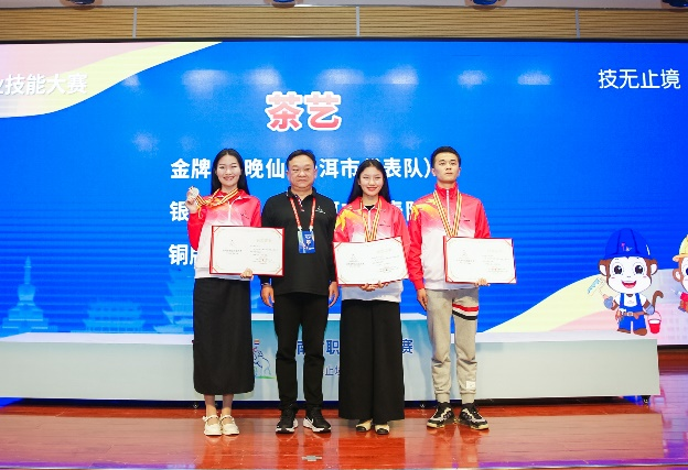 “技无止境、勇攀滇峰”2022年云南省职业技能大赛于2022年5月6日在云南技师学院正式开赛。我校赵意同学在茶艺竞赛项目中斩获银奖。