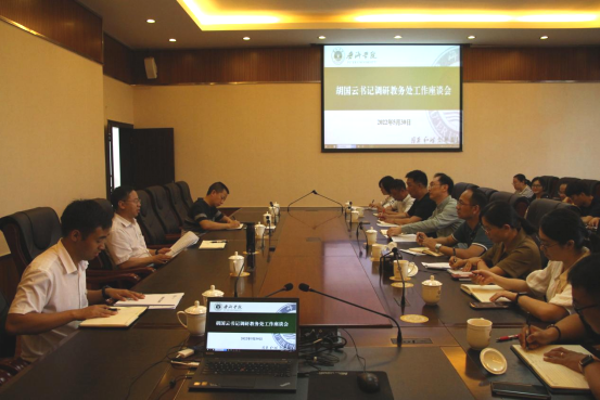 调研中,胡国云听取了各部门基本情况、工作亮点和存在问题、下一步工作计划和举措等方面的汇报。他充分肯定了各部门近年来取得的成绩,并对各部门干事创业的激情、团结进取的干部队伍和为学校发展作出的重要贡献予以高度肯定。