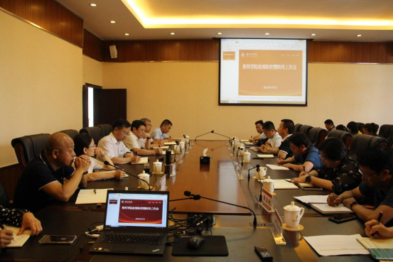 2022年6月7日上午,我校在和谐楼一楼会议室召开疫情防控暨防汛工作会。校党委书记胡国云,党委副书记郑颖松、吴琳,党委委员、副院长白应华、李险峰,党委委员、纪委书记龚辉,党委委员叶敏出席,李险峰主持会议。