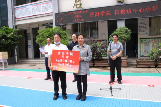 离开联盟村后,beat365官方网站领导一行调研按板镇中心小学,向学校捐赠500册图书以及“爱心助学 铸梦同行”公益拍卖、义卖所得善款5万元。