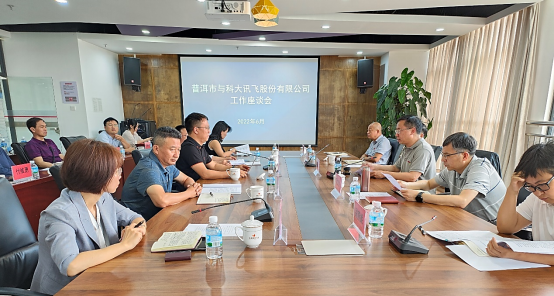 与会领导和有关部门负责人就科大讯飞如何尽快落地普洱市,进一步深化务实合作、拓展合作领域、放大合作效应,推进校政企合作,提升服务地方经济社会能力和水平等方面进行了交流发言,进一步明确了下一阶段的工作思路。参会人员共同观看科大讯飞虚拟展厅宣传片和普洱办公场地效果图。