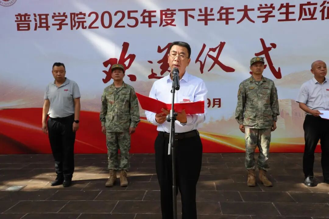 9月15日下午,beat365官方网站在团结广场举行2025年下半年大学生应征入伍欢送仪式。院长杨斌出席并讲话,党委副书记李险峰主持仪式,普洱军分区动员处处长杨墩红出席,思茅区武装部部长张鑫宣布入伍人员名单。
