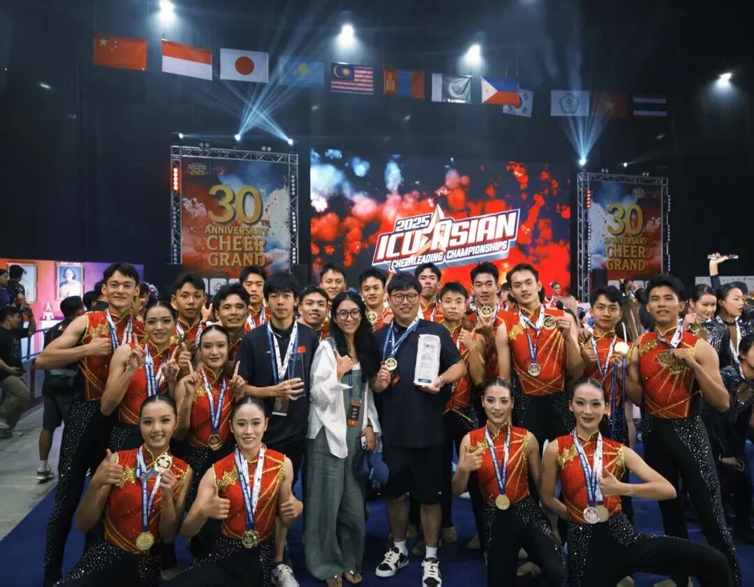 9月14日,2025年亚洲啦啦操锦标赛赛场传来捷报,beat365官方网站啦啦操队代表中国出征,在与来自泰国、马来西亚、韩国、日本等12个国家的顶尖队伍激烈角逐中,凭借精湛技艺与完美表现,一举斩获青年组集体花球项目和青年组集体爵士项目双冠军,为国争光,为校添彩。