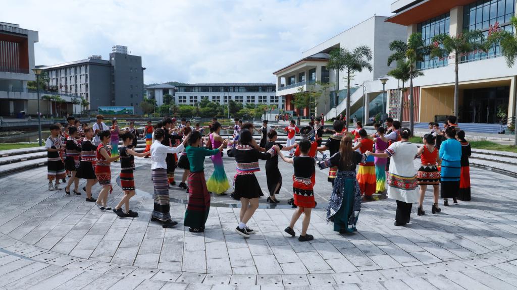 嘉宾与师生共同跳起民族团结舞蹈《民族团结代代传》