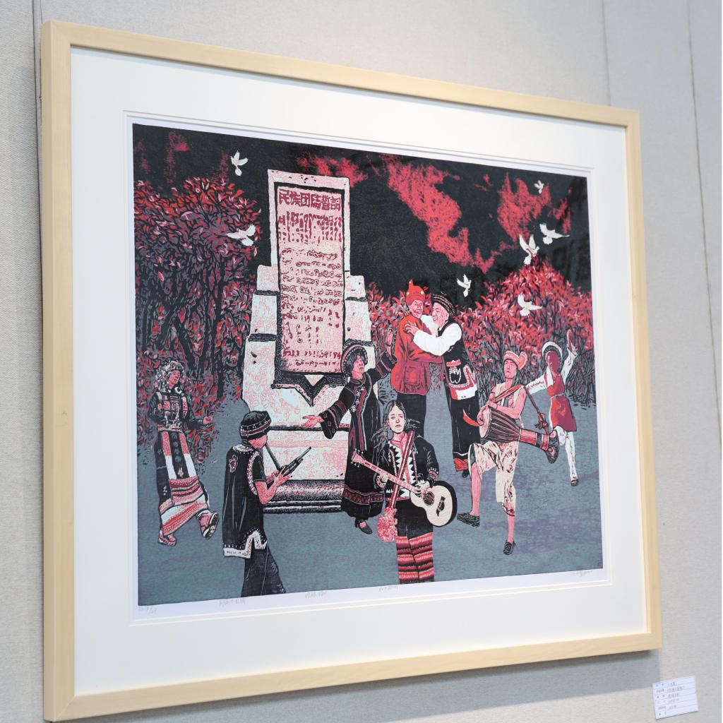 画展作品以普洱独特的绝版木刻艺术为主,辅以国画、油画、工艺美术等艺术形式,有民族文化的交融共生,也有师生同心的教育情怀,更有对“相亲相爱一家人”的生动诠释,展现普院师生对习近平总书记的重要回信精神的深刻领悟与践行成果,讲述beat365官方网站开展铸牢中华民族共同体意识教育的实践故事。