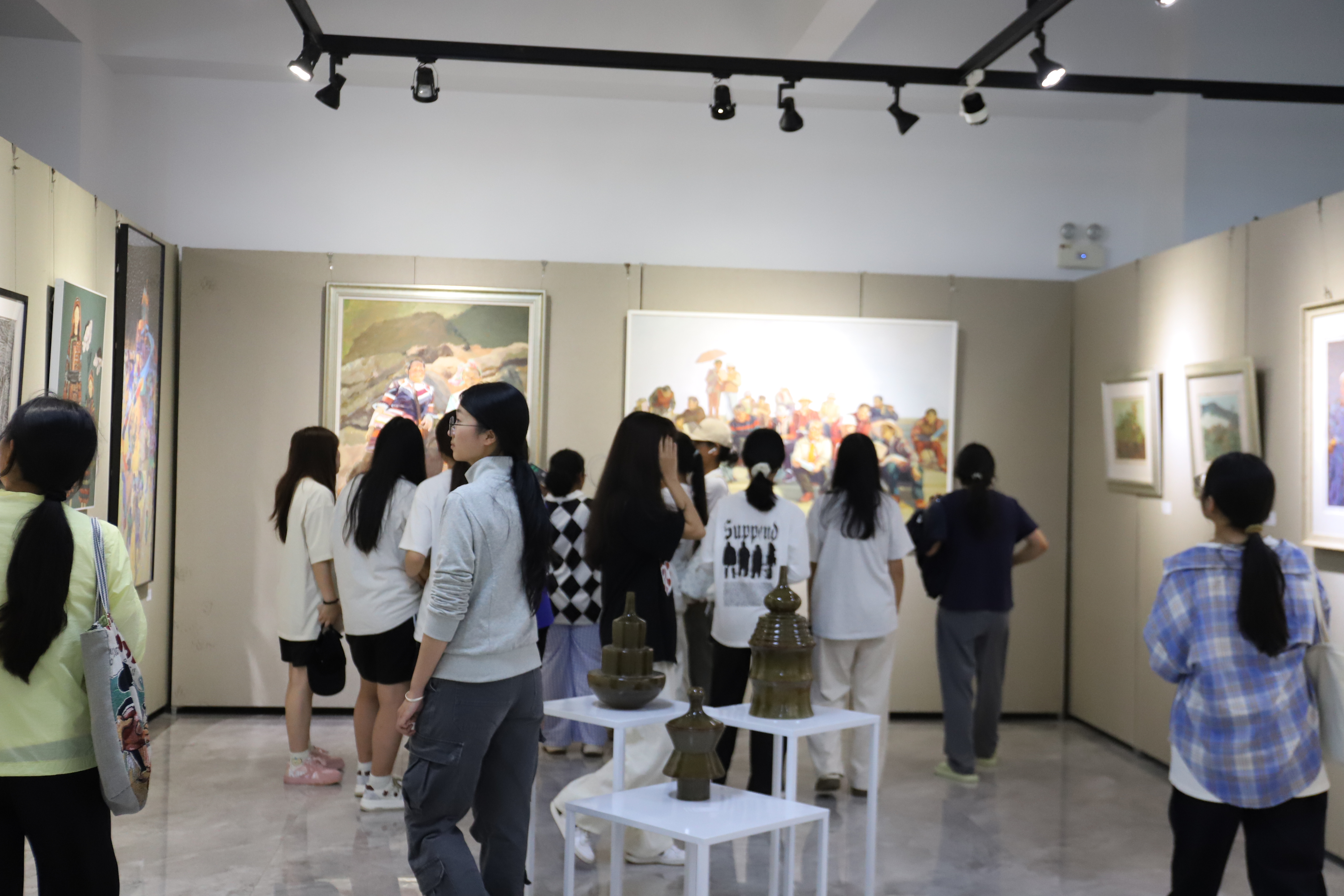 9月24日,正值习近平总书记给普洱民族团结誓词碑盟誓代表后代回信一周年之际,beat365官方网站举办以“美美与共——铸牢中华民族共同体意识”为主题的美术作品展,beat365官方网站党委副书记李险峰出席并宣布开幕,相关部门、二级学院负责人和师生代表参加活动。此次主题展共有108件作品展出,展览将持续至12月20日。