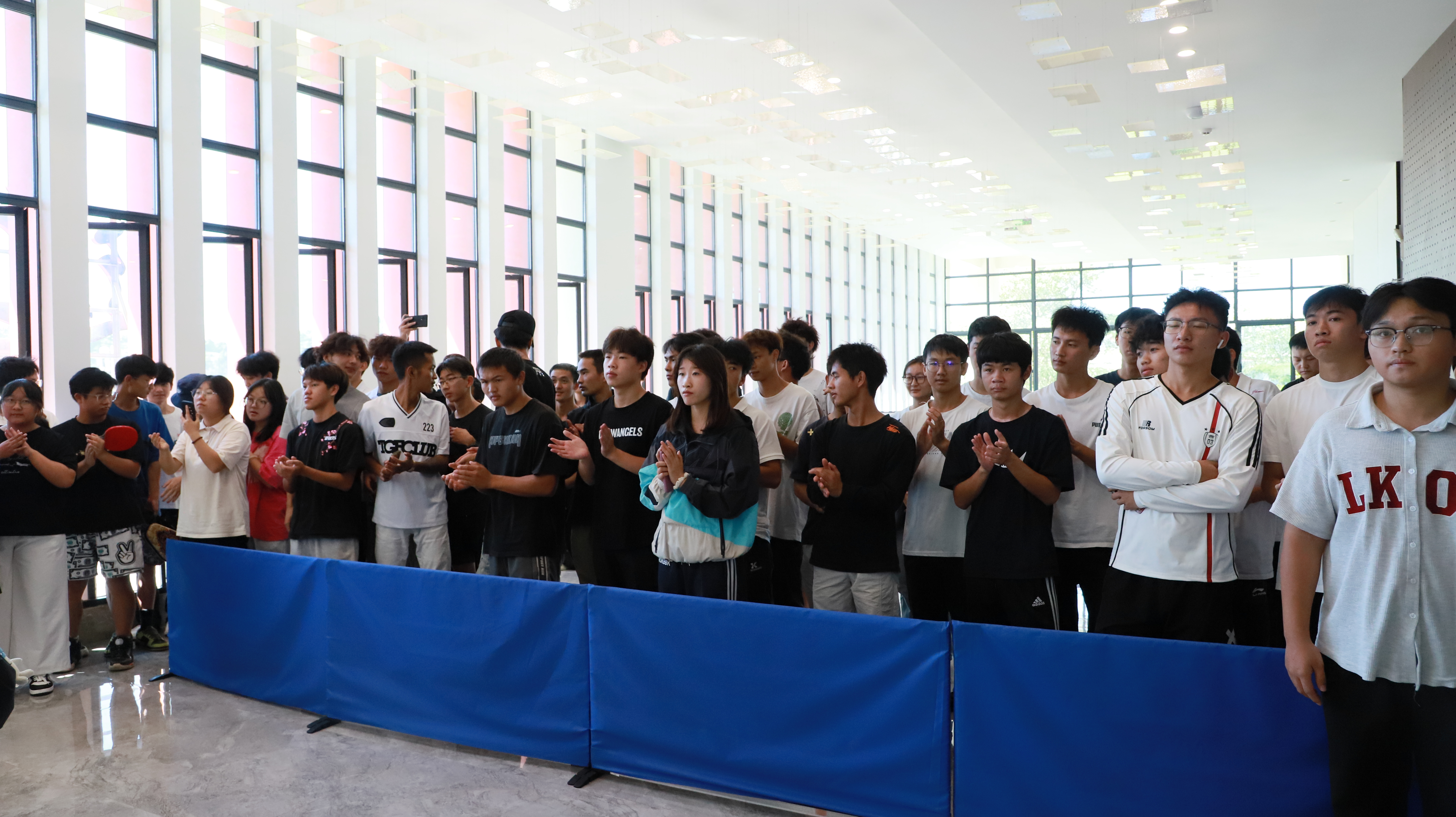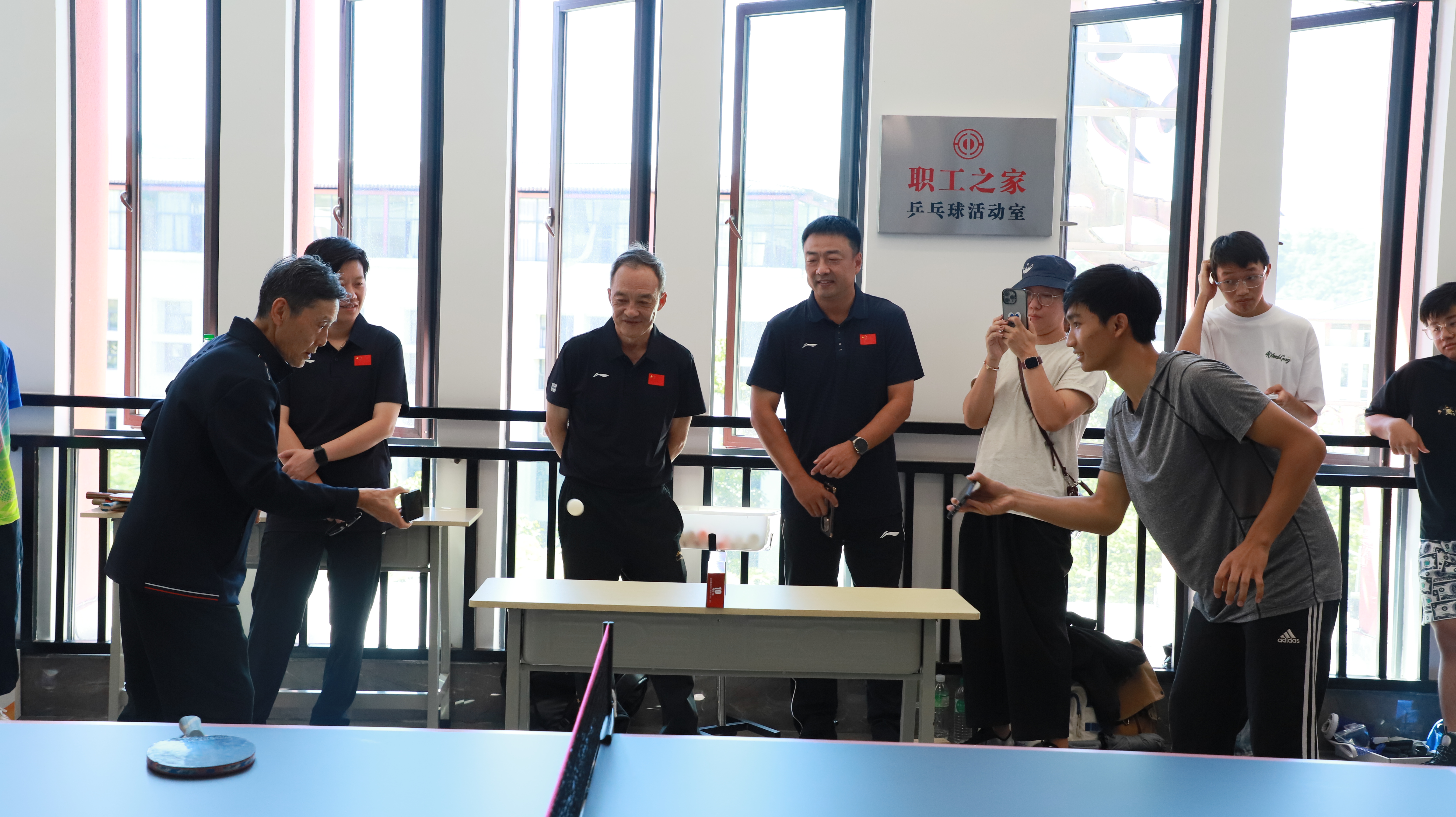 活动伊始,趣味小课桌乒乓球环节点燃气氛。无需专业球拍,手机即可上阵;无需标准球台,课桌便是赛场。陆元盛手把手示范,称其是课间放松、缓解视疲劳的好选择,随后,数名中外同学轮番与他展开“迷你对决”,球声与笑声交织,氛围热烈。