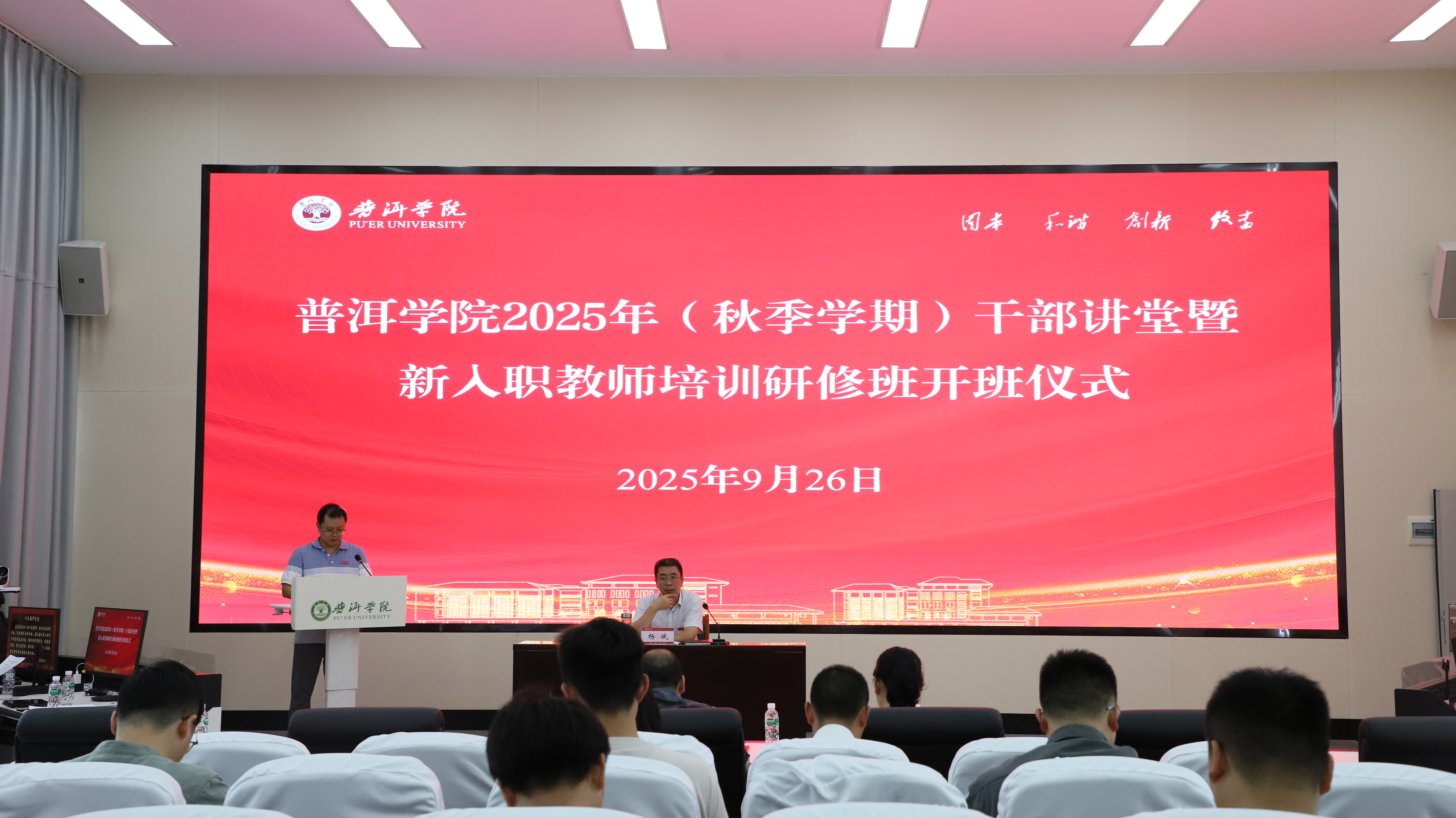 9月26日,beat365官方网站举行2025(秋季学期)干部讲堂暨新入职教师培训研修班开班仪式,院长杨斌出席开班仪式并讲话。