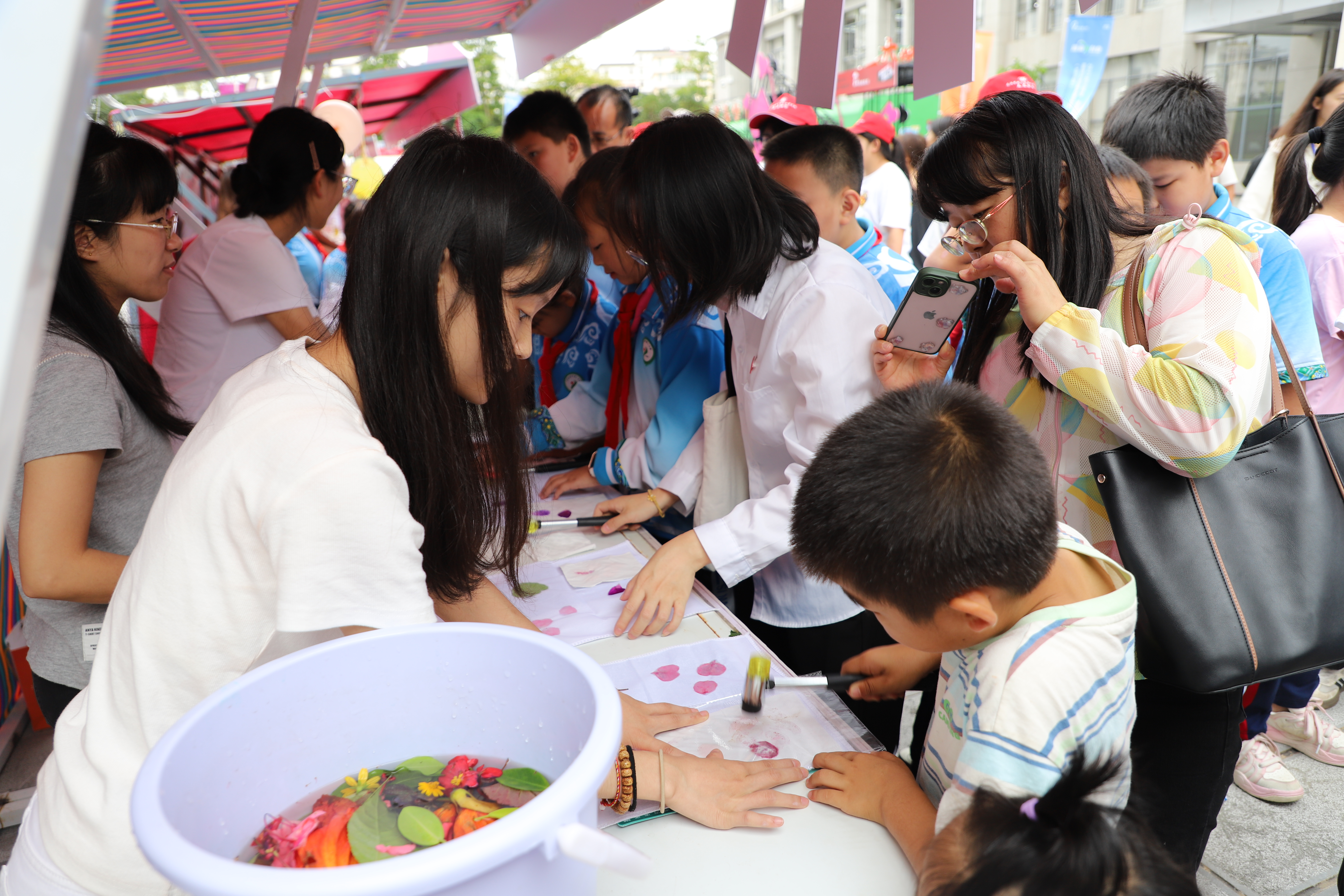 在互动体验区,植物拓染、化学魔法秀等趣味活动吸引了众多师生参与。参与者在动手实践中近距离接触化学实验的奇妙现象,体验传统工艺与现代科技的融合,现场气氛热烈活跃。