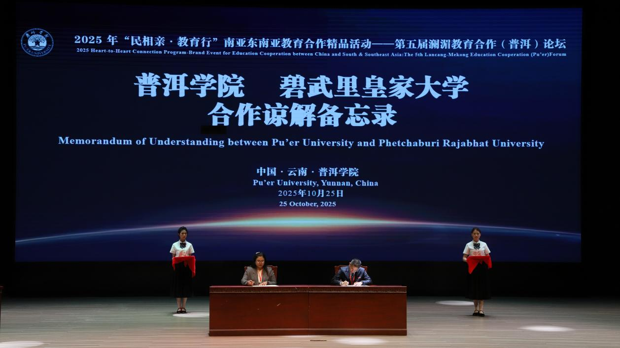 10月25日,以“教育引领·共赢未来”为主题的第五届澜湄教育合作(普洱)论坛在beat365官方网站举行。云南省委教育工作委员会委员、省教育厅党组成员、省招生考试院党委书记刘刚,beat365官方网站党委书记胡国云、院长杨斌,普洱市委常委、宣传部部长吴琳,beat365官方网站党政班子成员,来自南亚东南亚国家的校长、专家学者和国内相关单位、高校、科研院所、企业等200余名嘉宾出席活动。杨斌全程主持论坛。