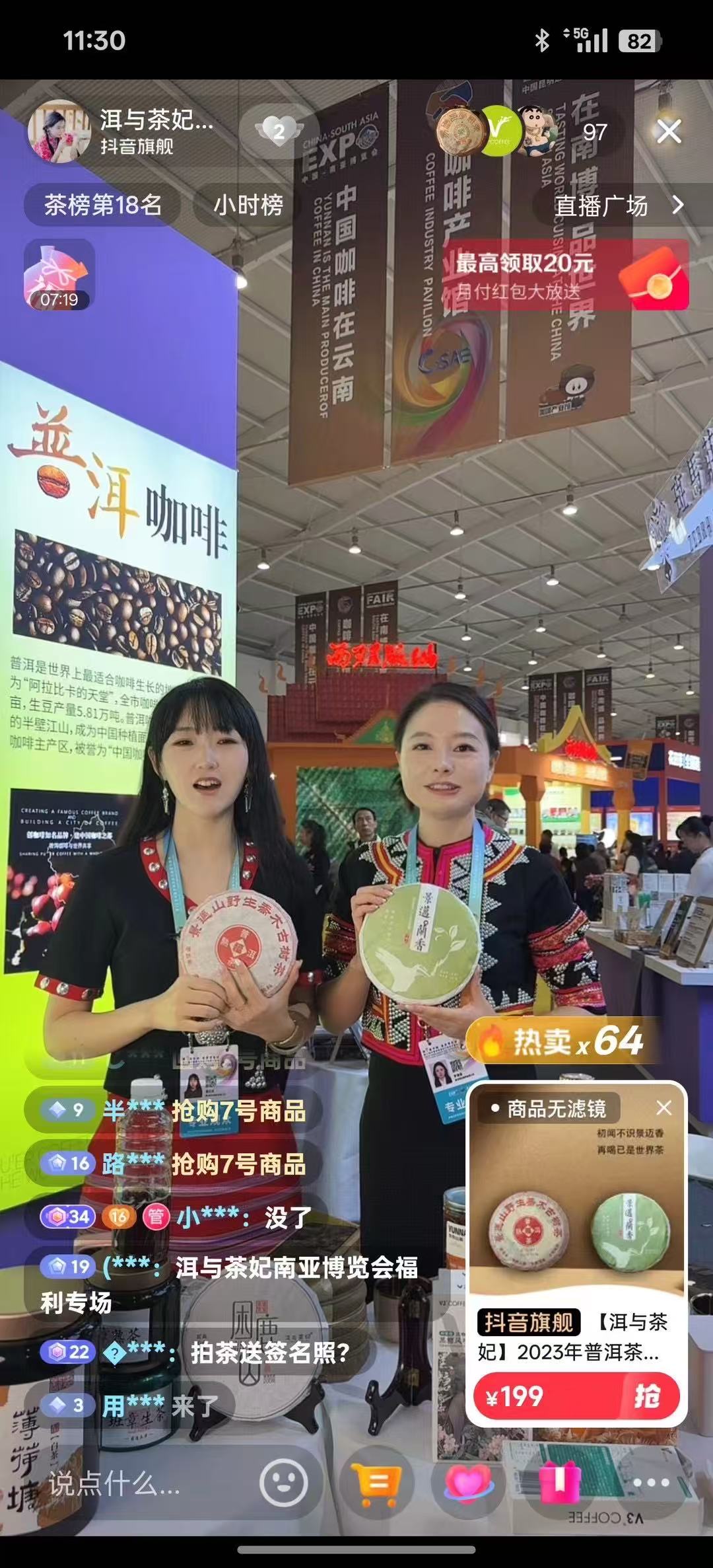 这场“背水一战”的转型,让团队找到了差异化赛道。没有专业灯光,就用茶山云雾当天然背景;缺乏脚本设计,就直播采茶、杀青、晒茶的真实过程。李海莲带着团队爬上海拔1800米的古茶园,潘云吉则在镜头前把茶马古道历史、茶叶冲泡技巧融入讲解。“有北方粉丝看完直播,专门飞来普洱旅游。”潘云吉笑着说,这场转型让“茶妃”直播间单场销售额从几百元跃升至50万元,2021年更成为抖音“5年金牌老店”。