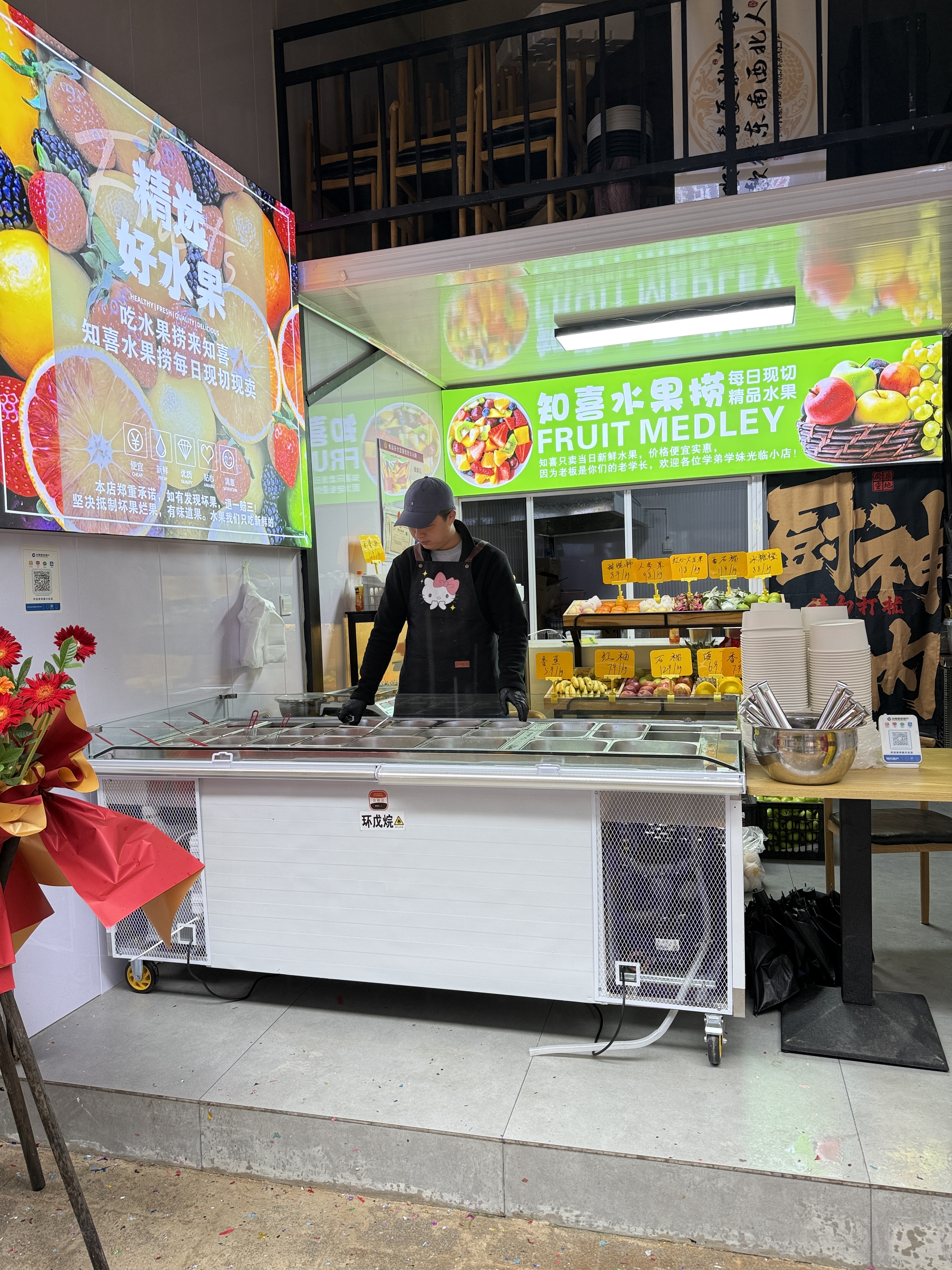 2025年10月,王康敏锐捕捉到年轻人对“健康轻食”的需求,在1735奥莱小镇开设“知喜水果捞店”,将服务从“功能性消费”拓展至“日常健康消费”。“学员练车需要补充维生素,白领逛街想吃点清爽的,水果捞正好填补了这个空白。”如今,他的创业版图已形成“学车-吃饭-娱乐-买水果”的民生服务链条,日均客流量超500人次。