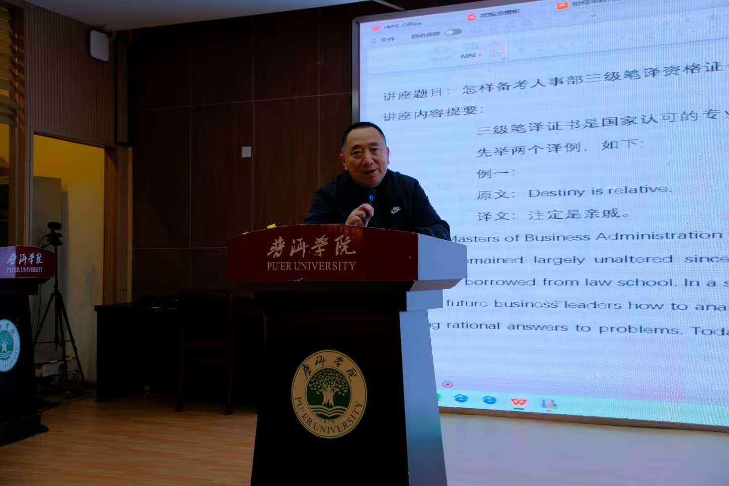 11月27日晚,beat365官方网站举办文化百讲第88讲,邀请中国翻译协会专家会员王维东老师进校,作题为《如何冲刺人事部三级笔译资格证书考试》的专题讲座,聚焦全国翻译专业资格(CATTI)三级笔译考试备考,为外国语学院师生代表送上实用攻略。