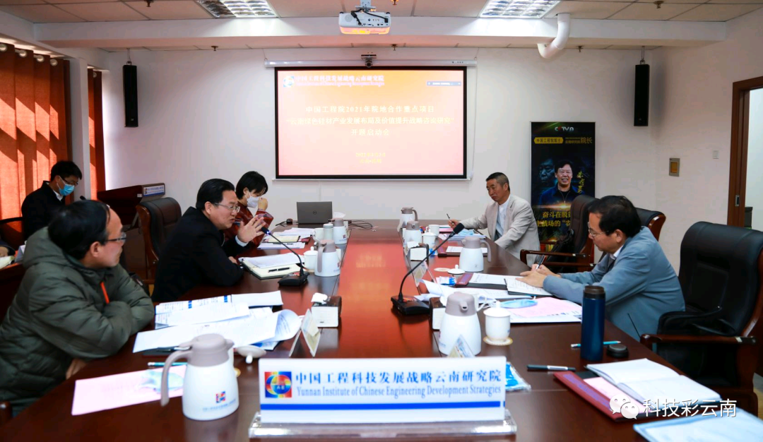 2022年4月3日,中国工程院与云南省政府2021年院地合作重点项目“云南绿色硅材产业发展布局及价值提升战略咨询研究”开题启动会在中国工程科技发展云南研究院(以下简称“云南研究院”)召开,会议采取“线上+线下”方式举行。中国工程院院士柴立元、何季麟、姜涛等参加会议。云南省科技厅科技合作二处处长毕红主持会议,云南研究院秘书长贵斌致辞。