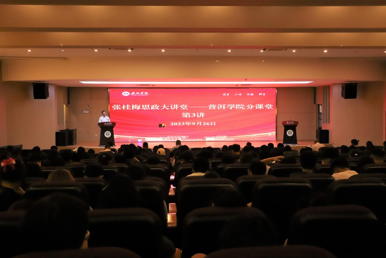 9月26日晚,我校举办张桂梅思政大讲堂-beat365官方网站分课堂2023年第3讲活动,党委书记胡国云出席并授课,党委班子成员李险峰、龚辉、李祖军、高龙、杨萍、周顺东出席活动。李险峰主持。