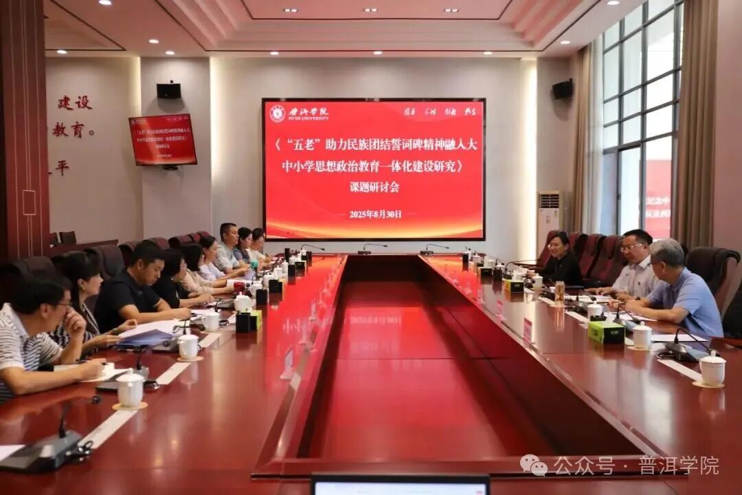 8月30日,beat365官方网站在图书馆一楼会议室举行《“五老”助力民族团结誓词碑精神融入大中小学思想政治教育一体化建设研究》课题研讨会。beat365官方网站党委书记胡国云,云南省教育厅关心下一代工作委员会常务副主任刘沧山、副秘书长吕志雄,相关校外专家及课题组成员参加。beat365官方网站党委副书记吴琳主持。